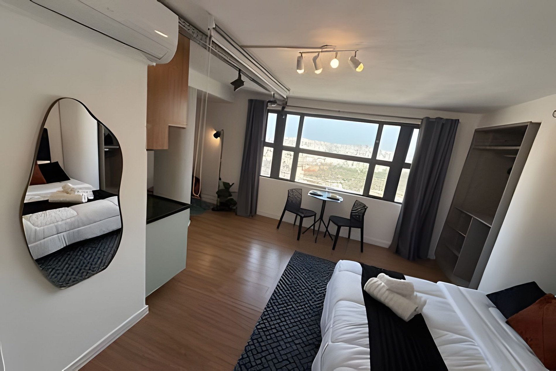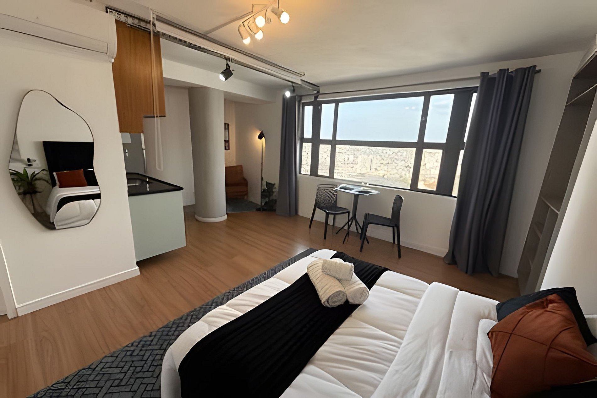 Um dos studio mais altos do Mirante do Vale, o prédio mais alto da cidade, que abriga o mais novo ponto turístico da capital: o Sampa Sky. Localizado no 39º andar, nosso espaço é um dos poucos voltado para a Zona Leste. De todas, essa é, sem dúvida, a melhor vista, pois você tem o Jardim do Parque Dom Pedro e uma imensidão a perder de vista. Você verá facilmente até edifícios que estão no Tatuapé. Brinque de localizar espaços marcantes como o Castelo do Museu Catavento, o Mercadão, o Edifício Martinelli, o Farol Santander no Altino Arantes (O Banespão) e os viadutos Santa Efigênia e do Chá. Falando do apto em si, pense em um espaço totalmente pensado para te proporcionar a melhor experiência: Cama Queen Size, Ar Condicionado Decoração Única Aconchegante, Cine HD com streamings, Cozinha com todos Utensílios para preparar um belo jantar, além de temperos e jogos de louças. Amplo espaço, banheiro otimizado e 2 certezas: Os muitos motivos para não querer sair dali e a melhor vista para nossa cidade que não para.