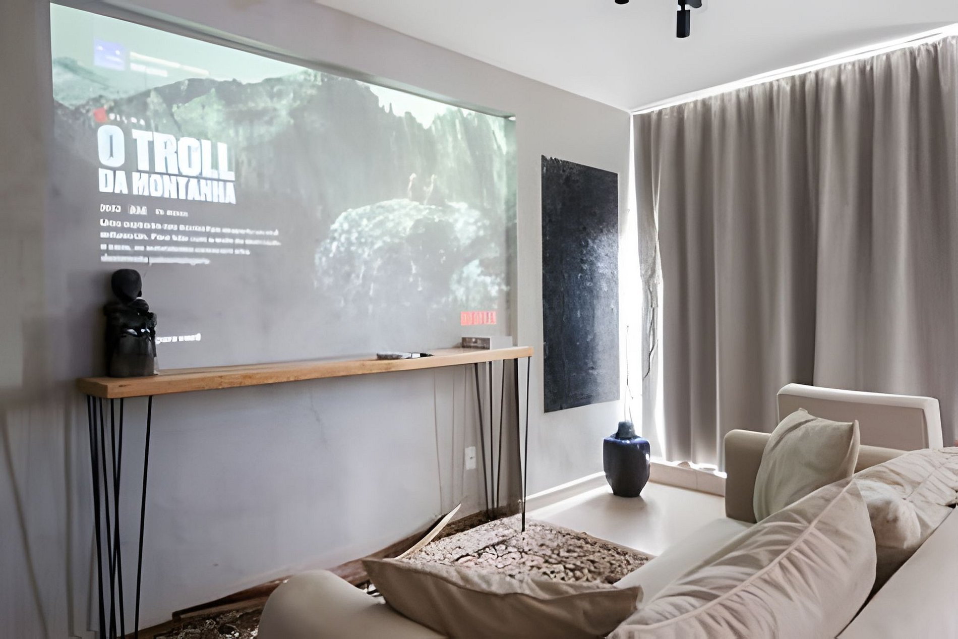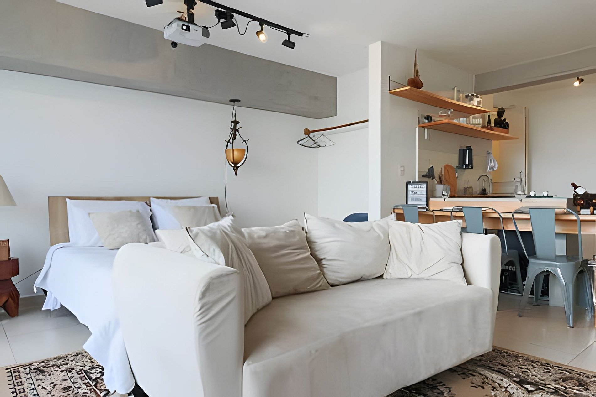Studio no 32º andar idealizado pelo músico @yassirchediak e projetado por @zairagon. Local com influências do conceito Wabi-Sabi. Conseguimos unir nesse espaço: vista deslumbrante, projetor que transforma o apartamento em uma sala de cinema, ar condicionado quente e frio, obras de arte, jogo incrível de luzes, cama Queen Size, sofá pra lá de confortável, cozinha moderna extremamente bem equipada, amplo banheiro. Desconecte-se do mundo e passe momentos incríveis conosco.