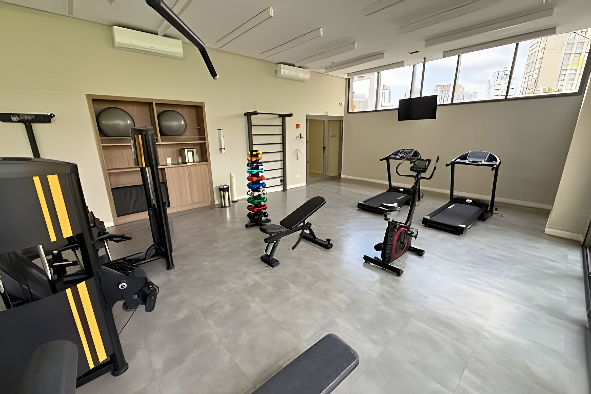 Academia bem equipada para manter sua rotina de exercícios.