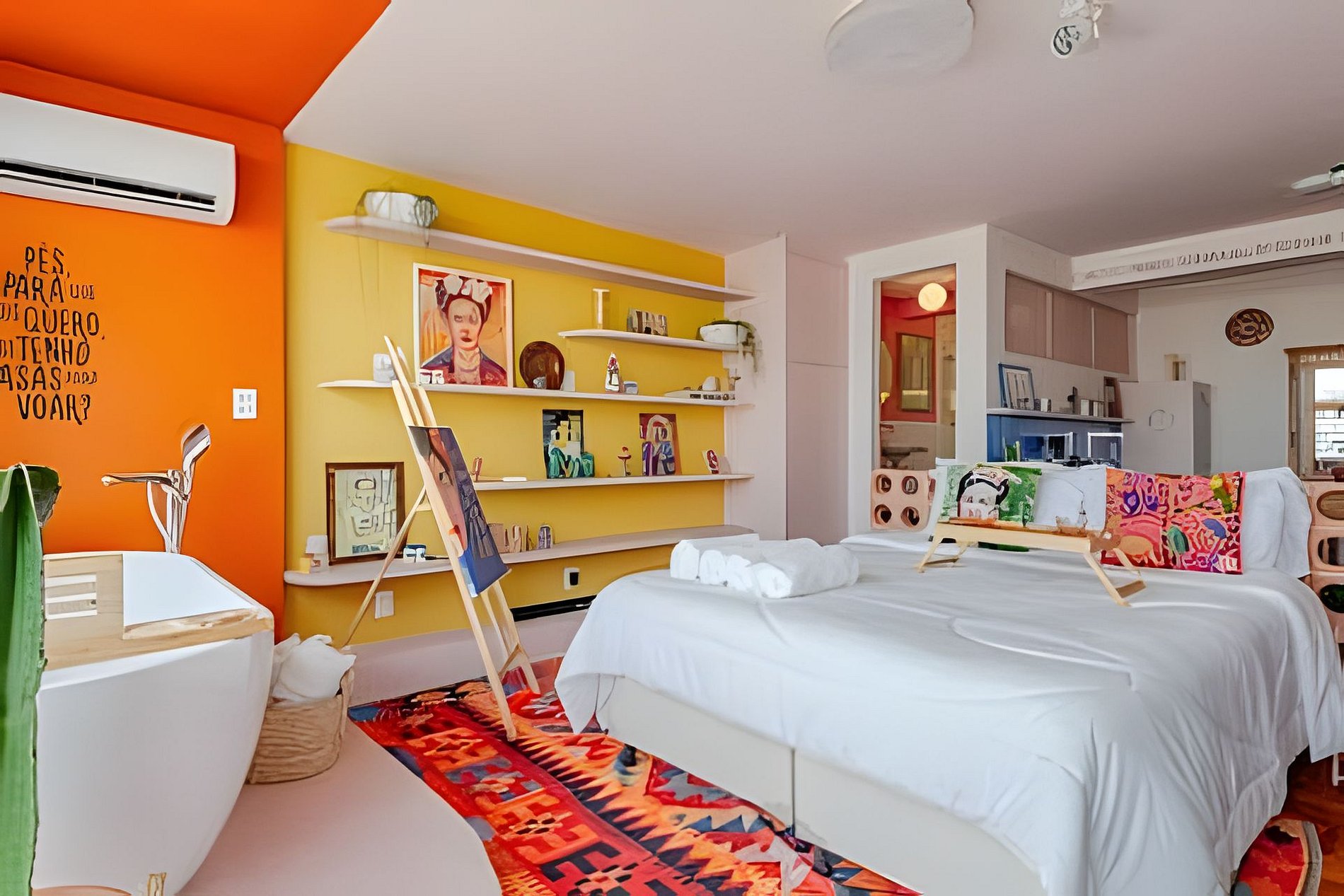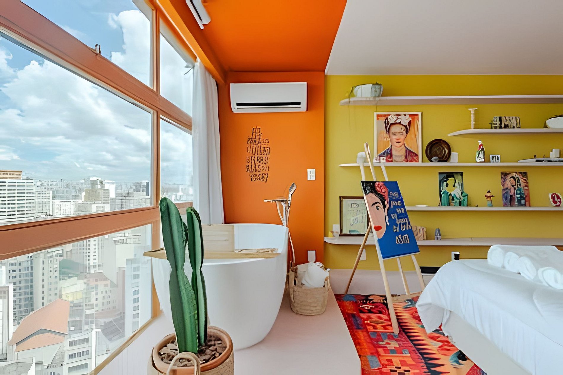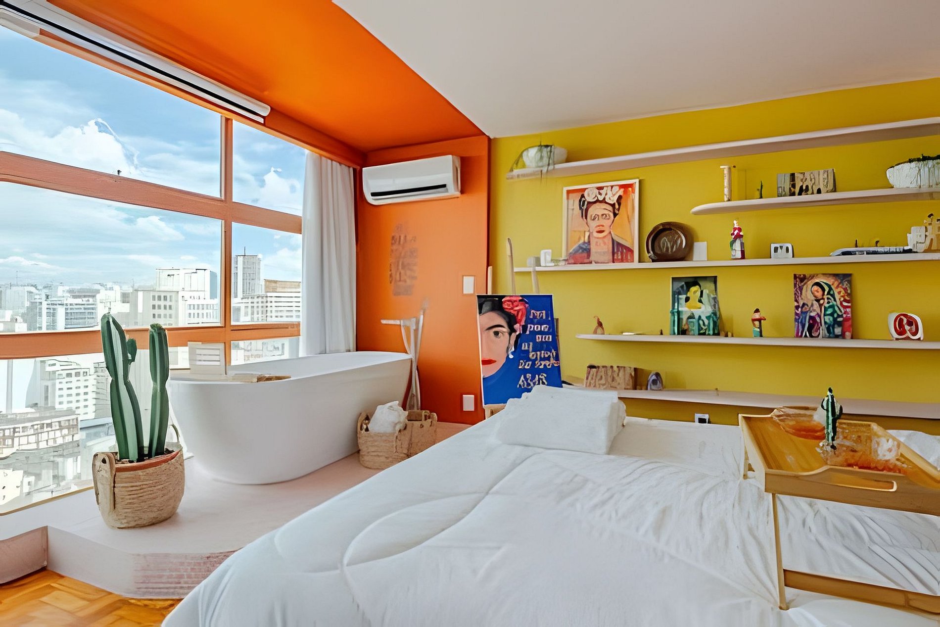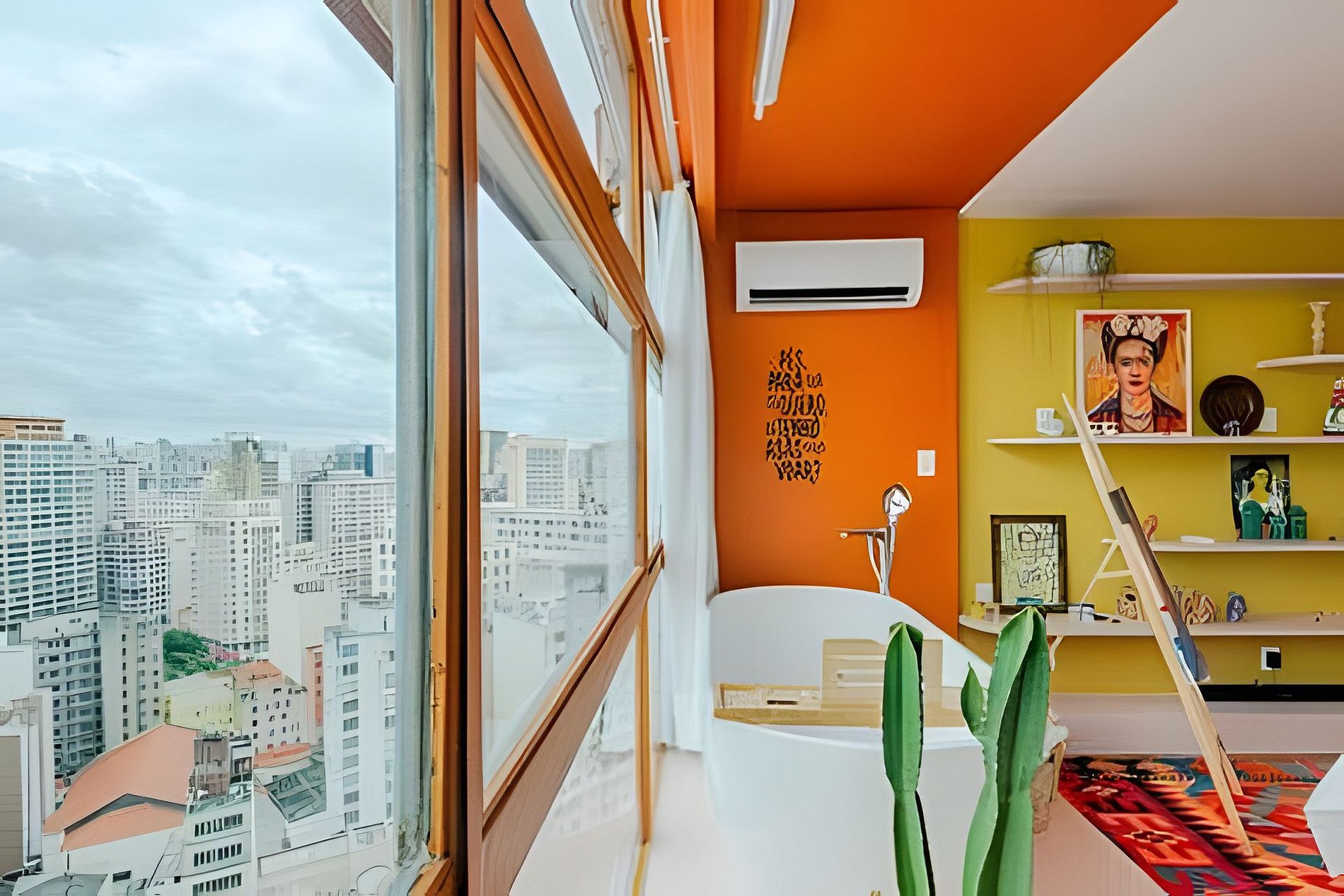 Viva a experiência Frida Kahlo neste estúdio vibrante e artístico! Com vista panorâmica de tirar o fôlego, o espaço une design ao conforto supremo. Destaques: Cinema Particular: Desfrute de telão e som de cinema. Relaxamento: Banheira de imersão, ao lado da janela no 32º Andar e Cama Queen. Estilo: Cozinha equipada, banheiro retrô e decoração inspiradora. Um refúgio colorido e icônico no coração da cidade. Reserve sua imersão na arte! Curta uma experiência neste lugar bem-localizado. 🎨 Viva uma Experiência Vibrante e Artística nas Alturas! Prepare-se para se hospedar em um refúgio que é uma verdadeira explosão de cores, arte e conforto. Com uma vista panorâmica de tirar o fôlego, comando de voz pela Alexa para operação dos itens do apto, diretamente do 32º Andar e um design cuidadosamente curado, este apartamento homenageia a grande dama arte latina, Frida Kahlo, oferecendo uma atmosfera boêmia, acolhedora e cinematográfica. 🎥 Cinema Particular no Quarto O grande destaque da sua estadia é a nossa experiência de entretenimento. O quarto conta com: Projetor de Alta Definição: Transforme o ambiente em um cinema privativo com um telão que garante imersão total para seus filmes e séries favoritos. Ele conta com os principais streamings do mercado. Som de Cinema: Sistema de áudio potente para que cada batida e diálogo tenham qualidade de sala de exibição, tudo isso sem precisar sair do conforto da cama. Suíte Master com Vista: Desfrute de uma luxuosa banheira de imersão estrategicamente posicionada ao lado da janela, permitindo um banho relaxante enquanto observa o skyline da cidade. Lembrando que você vai se hospedar no prédio do @SampaSky 🛋️ O Espaço Cada detalhe foi pensado para encantar: Cozinha Criativa: Um espaço funcional com bancada em cimento queimado, equipada com micro-ondas, cooktop, cafeteira, jogo completo e panelas, talheres e frigobar retrô. A decoração inclui azulejos azuis vibrantes e frases inspiradoras que adornam as vigas do teto. Décor Autêntico: Piso em taco de madeira original, mobiliário em tons de amarelo e laranja, e uma coleção de quadros e objetos que celebram a cultura mexicana. Todos eles vieram diretamente do México. Banheiro Estiloso: Um ambiente rosa "chiclete" com metais em latão envelhecido, chuveiro de teto e detalhes em azulejos brancos, mantendo a estética retrô-contemporânea. Fornecemos roupa de cama extremamente confortável, toalhas, roupões, sabonete líquido, shampoo e condicionador. 🌟 Comodidades Adicionais Ar-condicionado Dual Split para o seu máximo conforto térmico. Iluminação cênica que transforma o ambiente durante a noite. Cantinho de leitura com poltrona confortável e vista privilegiada. Espelho de corpo para aquela conferida e muitas fotos. Wi-fi de alta velocidade. 💐🌹 Decoração Romântica Que tal tornar sua estadia ainda mais inesquecível? Fizemos uma união com parceiros incríveis para te oferecer decorações românticas que vão encantar a você e a quem você ama! Pergunte para nós o que está incluído em cada decoração. Também há foto no anúncio sobre elas. O Mirante do Vale é um prédio em franca modernização. No espaço você terá lavanderia em sistema pay per use, diversos restaurantes populares, papelarias, gráficas, além de uma das principais atrações turísticas da cidade: o Sampa Sky. Uma incrível passarela de vidro que testará sua coragem e medos, mas renderá fotos incríveis. Vale a visita. Mas atenção: Compre os ingressos com bastante antecedência, pois costumam encerrar rapidamente. IMPORTANTE O espaço conta com portaria e segurança 24h, além de fechadura eletrônica onde o acesso é feito por senha. Esses itens possibilitam a entrada a qualquer momento. Não hesite em reservar o espaço, caso sua necessidade seja entrar lá pelas tantas da madrugada. Garantimos que não haverá nenhuma dificuldade nesse sentido. Somos uma equipe de trabalho da @HospedaBamba que administra alguns apartamentos. Por isso, para te atender de um jeito mais eficiente e organizado, preferimos sempre conversar pelo aplicativo do Airbnb (caso ainda não tenha baixado, recomendo bastante que baixe, vai ajudar muito na sua estadia). Isso ajuda que todas as suas necessidades e pedidos não sejam perdidos e estejam sempre na nossa tela. Além disso, prometemos uma velocidade no atendimento poucas vezes vista em reservas feitas por aqui e garantimos atender suas necessidades do começo ao fim da estadia. Studio localizado no Mirante do Vale, o prédio mais alto da cidade, que abriga o mais novo ponto turístico da capital: o Sampa Sky. Possuímos parceria e ingressos com desconto para a atração. Nosso espaço te proporciona uma vista tão surreal quanto ao dessa atração, fica de frente para o Vale do Anhangabaú, um ponto estratégico para você apreciar marcos arquitetônicos como o Edifício Martinelli, o Farol Santander no Altino Arantes (O Banespão) e os viadutos Santa Efigênia e do Chá. Espaço totalmente pensado para proporcionar a melhor experiência aos nossos hóspedes.