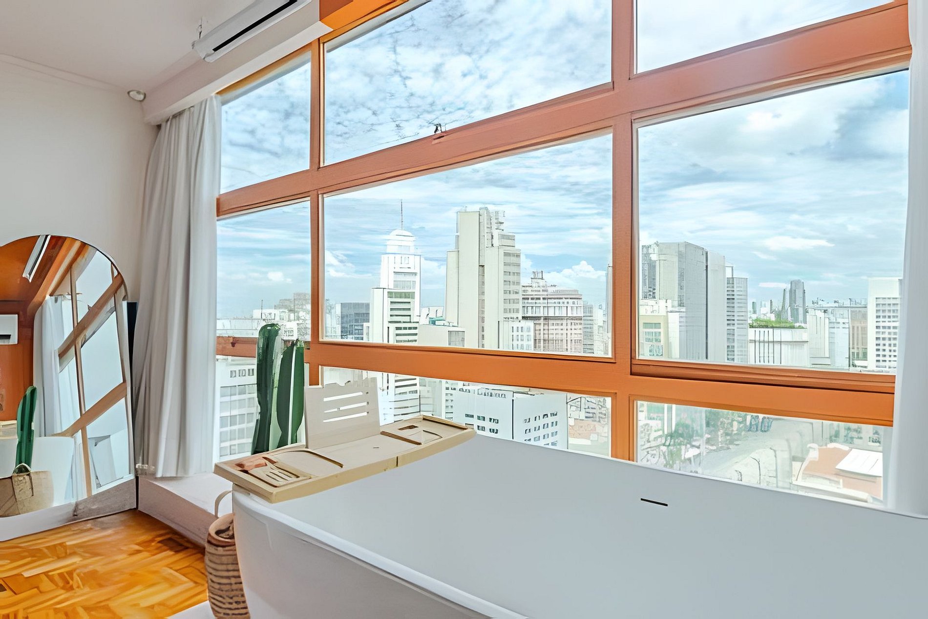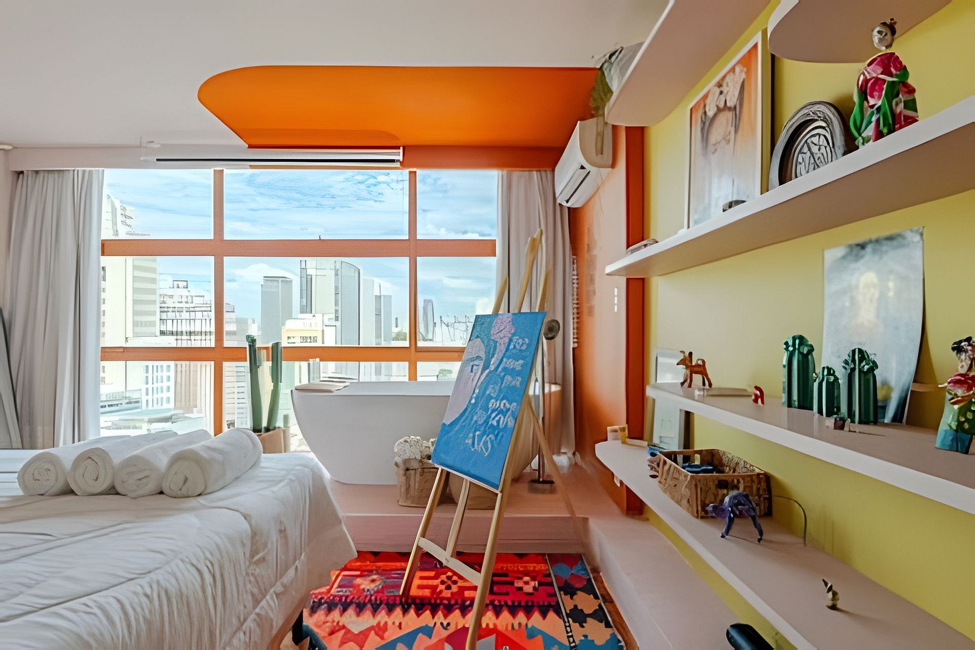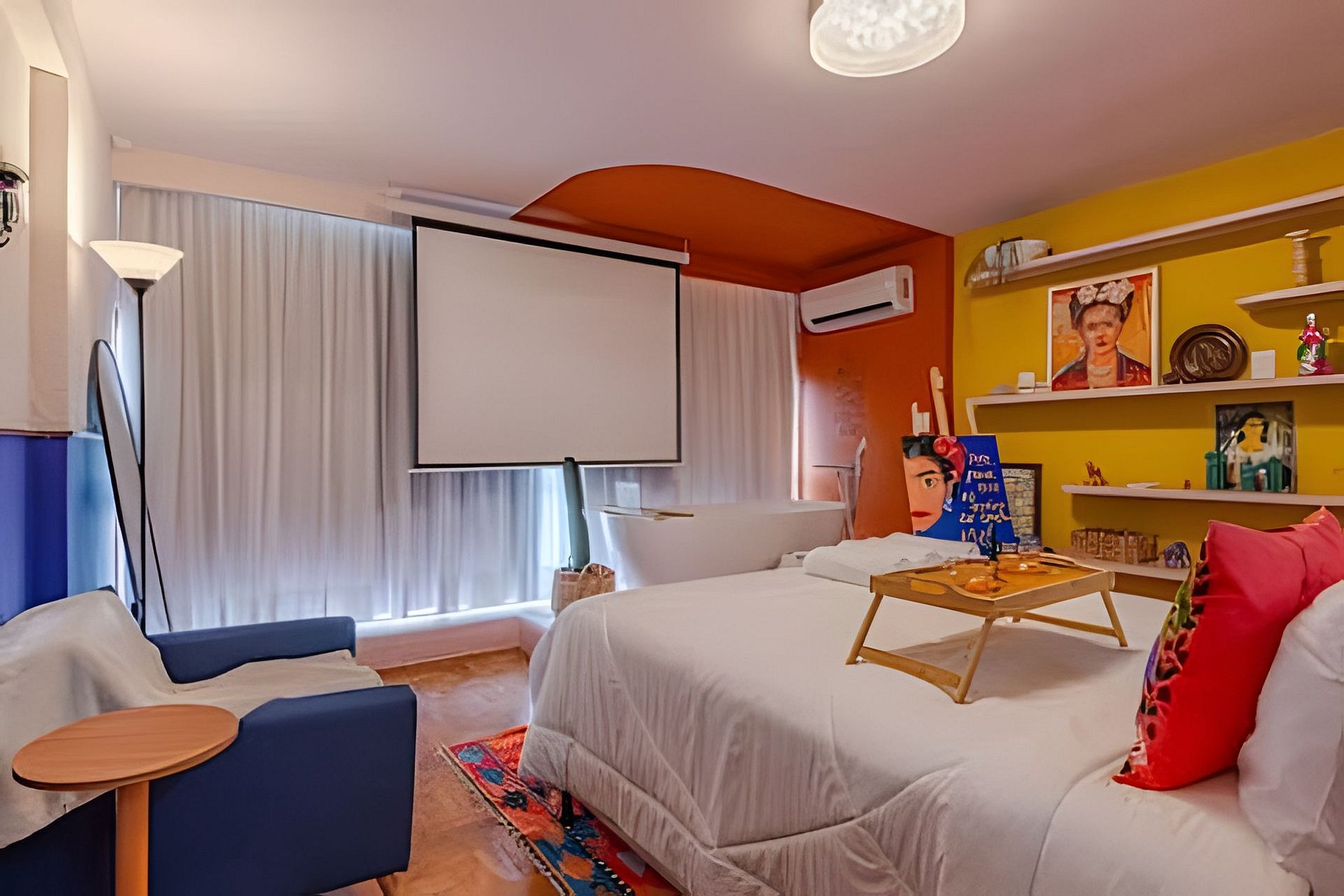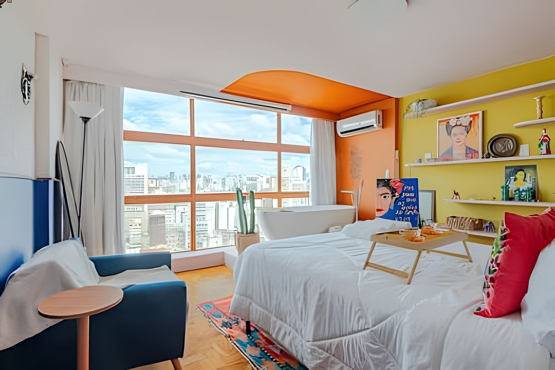 Viva a experiência Frida Kahlo neste estúdio vibrante e artístico! Com vista panorâmica de tirar o fôlego, o espaço une design ao conforto supremo. Destaques: Cinema Particular: Desfrute de telão e som de cinema. Relaxamento: Banheira de imersão, ao lado da janela no 32º Andar e Cama Queen. Estilo: Cozinha equipada, banheiro retrô e decoração inspiradora. Um refúgio colorido e icônico no coração da cidade. Reserve sua imersão na arte! Curta uma experiência neste lugar bem-localizado. 🎨 Viva uma Experiência Vibrante e Artística nas Alturas! Prepare-se para se hospedar em um refúgio que é uma verdadeira explosão de cores, arte e conforto. Com uma vista panorâmica de tirar o fôlego, comando de voz pela Alexa para operação dos itens do apto, diretamente do 32º Andar e um design cuidadosamente curado, este apartamento homenageia a grande dama arte latina, Frida Kahlo, oferecendo uma atmosfera boêmia, acolhedora e cinematográfica. 🎥 Cinema Particular no Quarto O grande destaque da sua estadia é a nossa experiência de entretenimento. O quarto conta com: Projetor de Alta Definição: Transforme o ambiente em um cinema privativo com um telão que garante imersão total para seus filmes e séries favoritos. Ele conta com os principais streamings do mercado. Som de Cinema: Sistema de áudio potente para que cada batida e diálogo tenham qualidade de sala de exibição, tudo isso sem precisar sair do conforto da cama. Suíte Master com Vista: Desfrute de uma luxuosa banheira de imersão estrategicamente posicionada ao lado da janela, permitindo um banho relaxante enquanto observa o skyline da cidade. Lembrando que você vai se hospedar no prédio do @SampaSky 🛋️ O Espaço Cada detalhe foi pensado para encantar: Cozinha Criativa: Um espaço funcional com bancada em cimento queimado, equipada com micro-ondas, cooktop, cafeteira, jogo completo e panelas, talheres e frigobar retrô. A decoração inclui azulejos azuis vibrantes e frases inspiradoras que adornam as vigas do teto. Décor Autêntico: Piso em taco de madeira original, mobiliário em tons de amarelo e laranja, e uma coleção de quadros e objetos que celebram a cultura mexicana. Todos eles vieram diretamente do México. Banheiro Estiloso: Um ambiente rosa "chiclete" com metais em latão envelhecido, chuveiro de teto e detalhes em azulejos brancos, mantendo a estética retrô-contemporânea. Fornecemos roupa de cama extremamente confortável, toalhas, roupões, sabonete líquido, shampoo e condicionador. 🌟 Comodidades Adicionais Ar-condicionado Dual Split para o seu máximo conforto térmico. Iluminação cênica que transforma o ambiente durante a noite. Cantinho de leitura com poltrona confortável e vista privilegiada. Espelho de corpo para aquela conferida e muitas fotos. Wi-fi de alta velocidade. 💐🌹 Decoração Romântica Que tal tornar sua estadia ainda mais inesquecível? Fizemos uma união com parceiros incríveis para te oferecer decorações românticas que vão encantar a você e a quem você ama! Pergunte para nós o que está incluído em cada decoração. Também há foto no anúncio sobre elas. O Mirante do Vale é um prédio em franca modernização. No espaço você terá lavanderia em sistema pay per use, diversos restaurantes populares, papelarias, gráficas, além de uma das principais atrações turísticas da cidade: o Sampa Sky. Uma incrível passarela de vidro que testará sua coragem e medos, mas renderá fotos incríveis. Vale a visita. Mas atenção: Compre os ingressos com bastante antecedência, pois costumam encerrar rapidamente. IMPORTANTE O espaço conta com portaria e segurança 24h, além de fechadura eletrônica onde o acesso é feito por senha. Esses itens possibilitam a entrada a qualquer momento. Não hesite em reservar o espaço, caso sua necessidade seja entrar lá pelas tantas da madrugada. Garantimos que não haverá nenhuma dificuldade nesse sentido. Somos uma equipe de trabalho da @HospedaBamba que administra alguns apartamentos. Por isso, para te atender de um jeito mais eficiente e organizado, preferimos sempre conversar pelo aplicativo do Airbnb (caso ainda não tenha baixado, recomendo bastante que baixe, vai ajudar muito na sua estadia). Isso ajuda que todas as suas necessidades e pedidos não sejam perdidos e estejam sempre na nossa tela. Além disso, prometemos uma velocidade no atendimento poucas vezes vista em reservas feitas por aqui e garantimos atender suas necessidades do começo ao fim da estadia. Studio localizado no Mirante do Vale, o prédio mais alto da cidade, que abriga o mais novo ponto turístico da capital: o Sampa Sky. Possuímos parceria e ingressos com desconto para a atração. Nosso espaço te proporciona uma vista tão surreal quanto ao dessa atração, fica de frente para o Vale do Anhangabaú, um ponto estratégico para você apreciar marcos arquitetônicos como o Edifício Martinelli, o Farol Santander no Altino Arantes (O Banespão) e os viadutos Santa Efigênia e do Chá. Espaço totalmente pensado para proporcionar a melhor experiência aos nossos hóspedes.