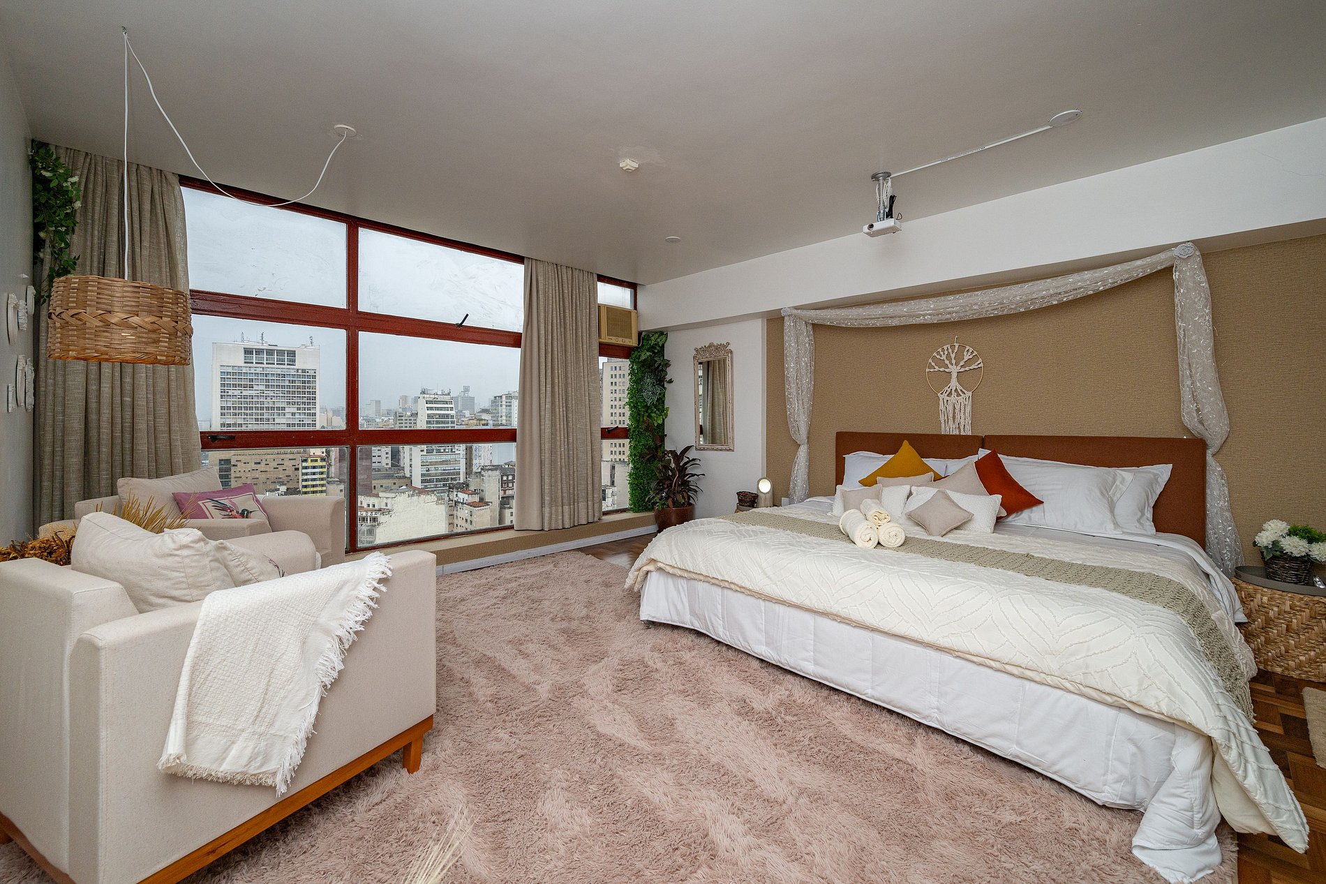 Studio localizado no Mirante do Vale, o prédio mais alto da cidade, que abriga o mais novo ponto turístico da capital: o Sampa Sky. Nosso espaço te proporciona uma vista tão surreal quanto ao dessa atração, fica de frente para o Vale do Anhangabaú, um ponto estratégico para você apreciar marcos arquitetônicos como o Edifício Martinelli, o Farol Santander no Altino Arantes (O Banespão) e os viadutos Santa Efigênia e do Chá. Espaço totalmente pensado para proporcionar a melhor experiência aos nossos hóspedes.