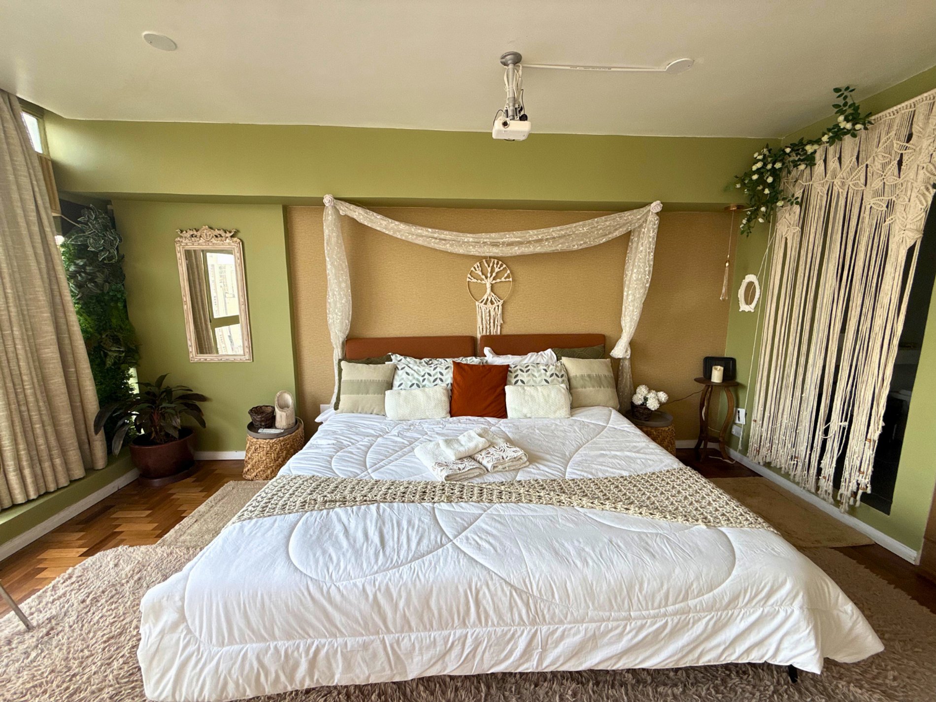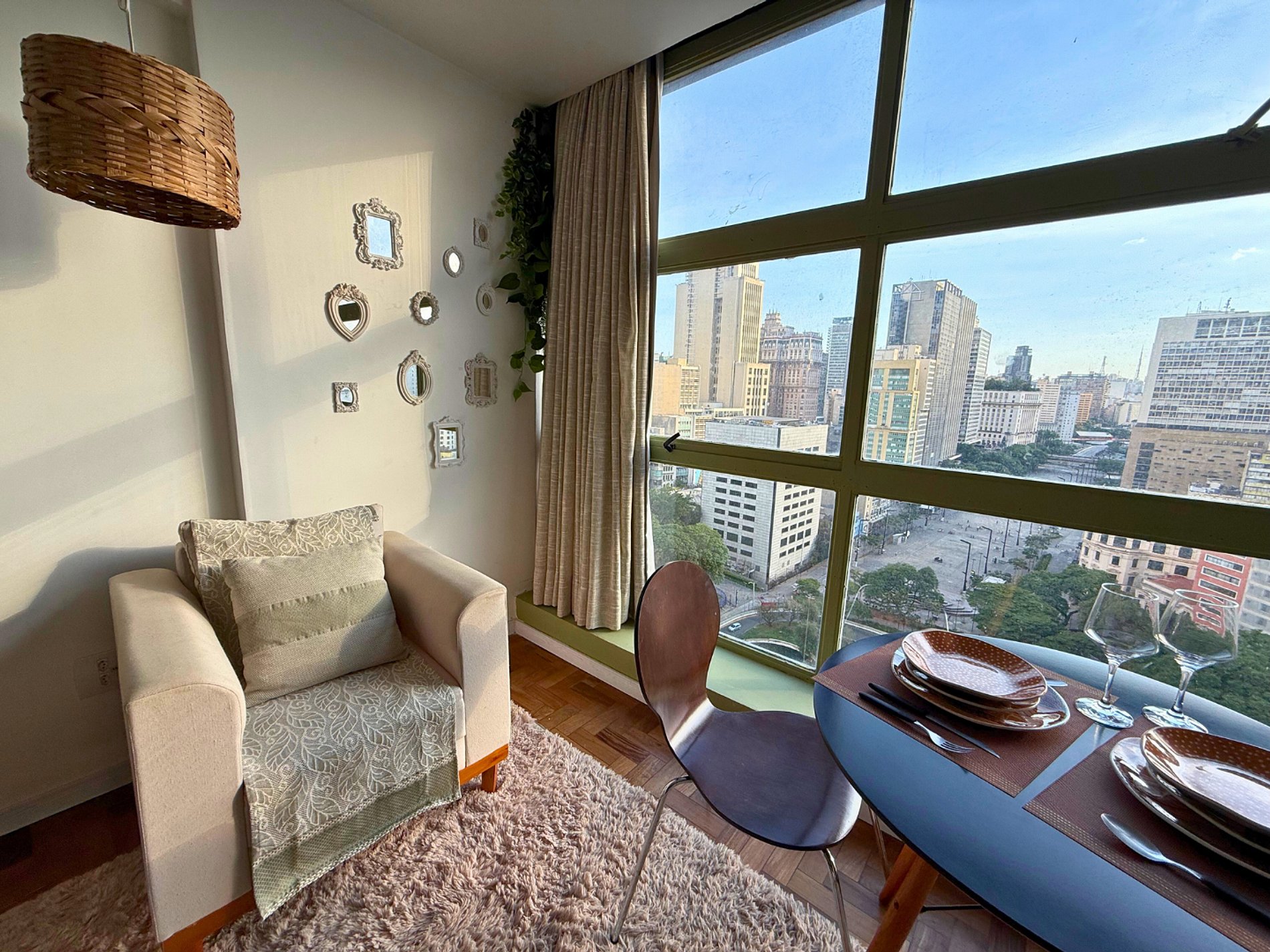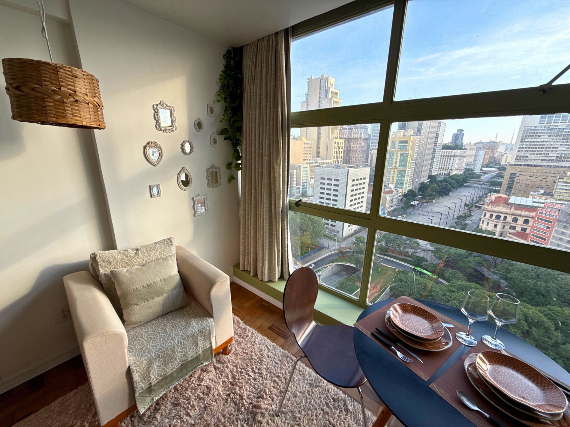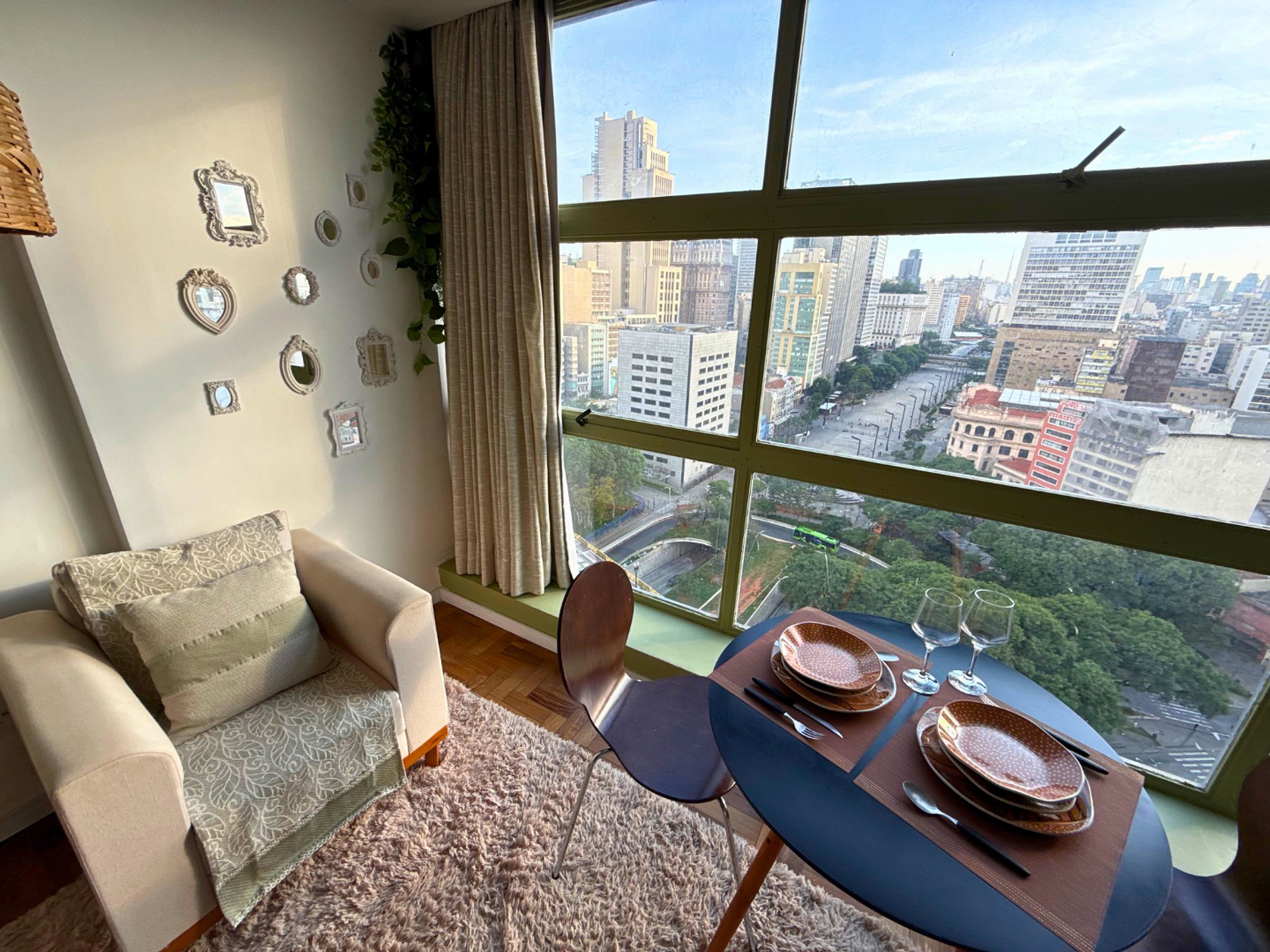 Aconchegante Airbnb no prédio do #SampaSky composto por Cama King envolta por um show de luzes, cama auxiliar para o 3º hóspede, Cinema HD que transforma uma parede em tela com uma qualidade de imagem impressionante, além de som Estéreo, cozinha completa com os principais itens para seu conforto, jogo de cama e toalhas de excelentes qualidade, indescritível vista para o Vale do Anhangabaú onde você poderá divertir identificando clássicos edifícios da nossa metrópole.