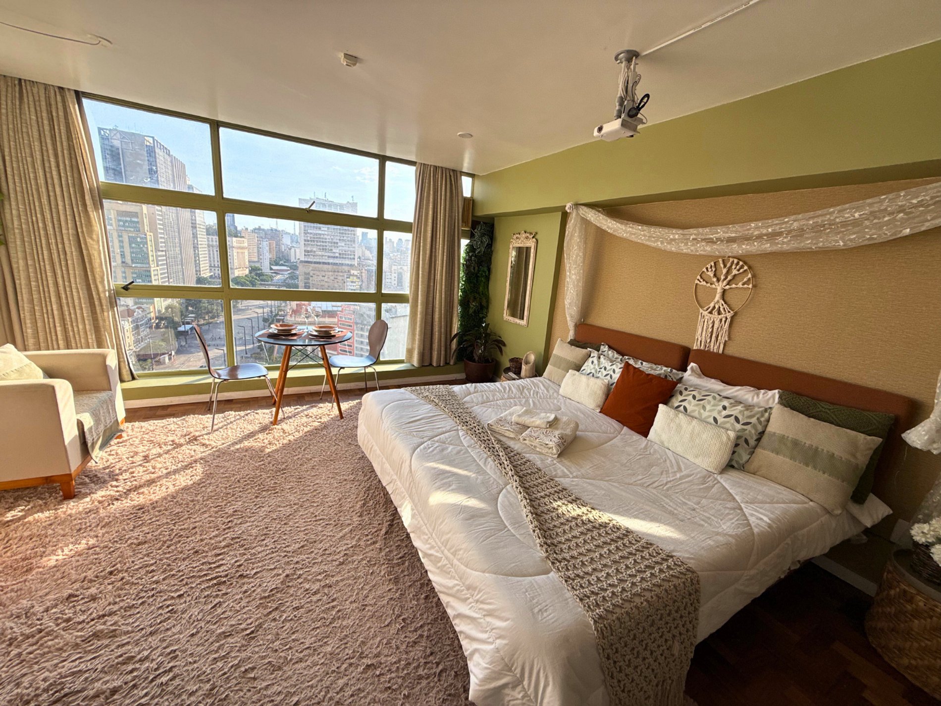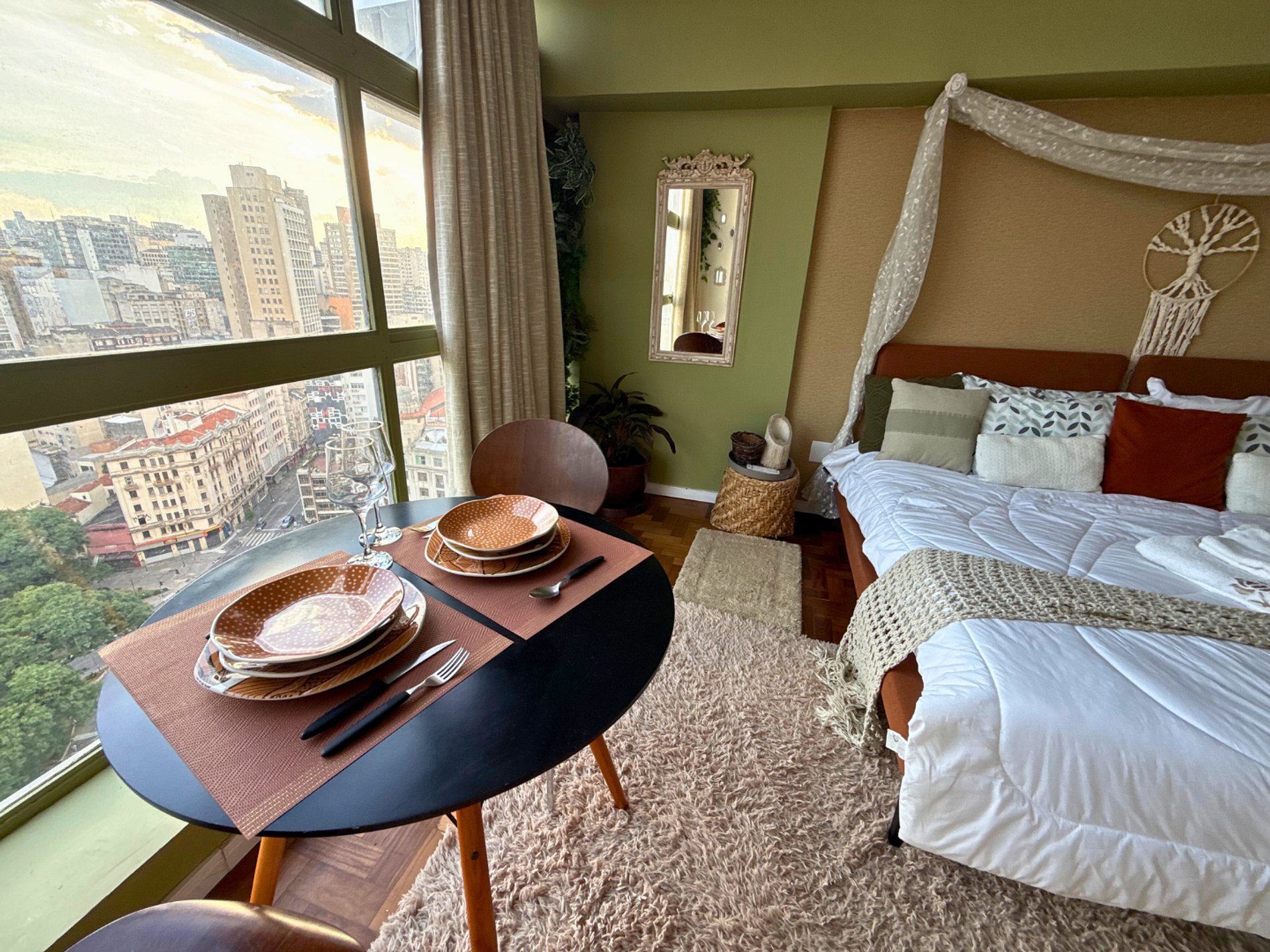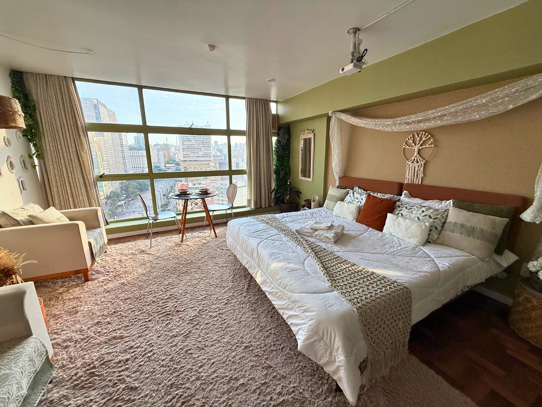 Studio localizado no Mirante do Vale, o prédio mais alto da cidade, que abriga o mais novo ponto turístico da capital: o Sampa Sky. Nosso espaço te proporciona uma vista tão surreal quanto ao dessa atração, fica de frente para o Vale do Anhangabaú, um ponto estratégico para você apreciar marcos arquitetônicos como o Edifício Martinelli, o Farol Santander no Altino Arantes (O Banespão) e os viadutos Santa Efigênia e do Chá. Espaço totalmente pensado para proporcionar a melhor experiência aos nossos hóspedes.